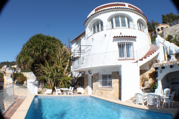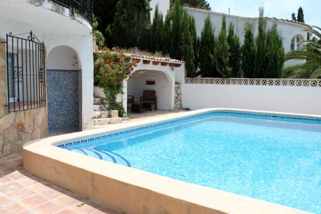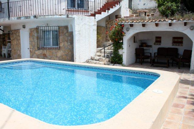 Freistehendes Ferienhaus für 6 - 10 Personen ( in "Montemar" / Benissa) mit eigenem Pool (4 x 8 m) mit römischer Treppe. Herrlicher Panorama - und Meerblick. Grosse Sonnenterrasse am Pool.